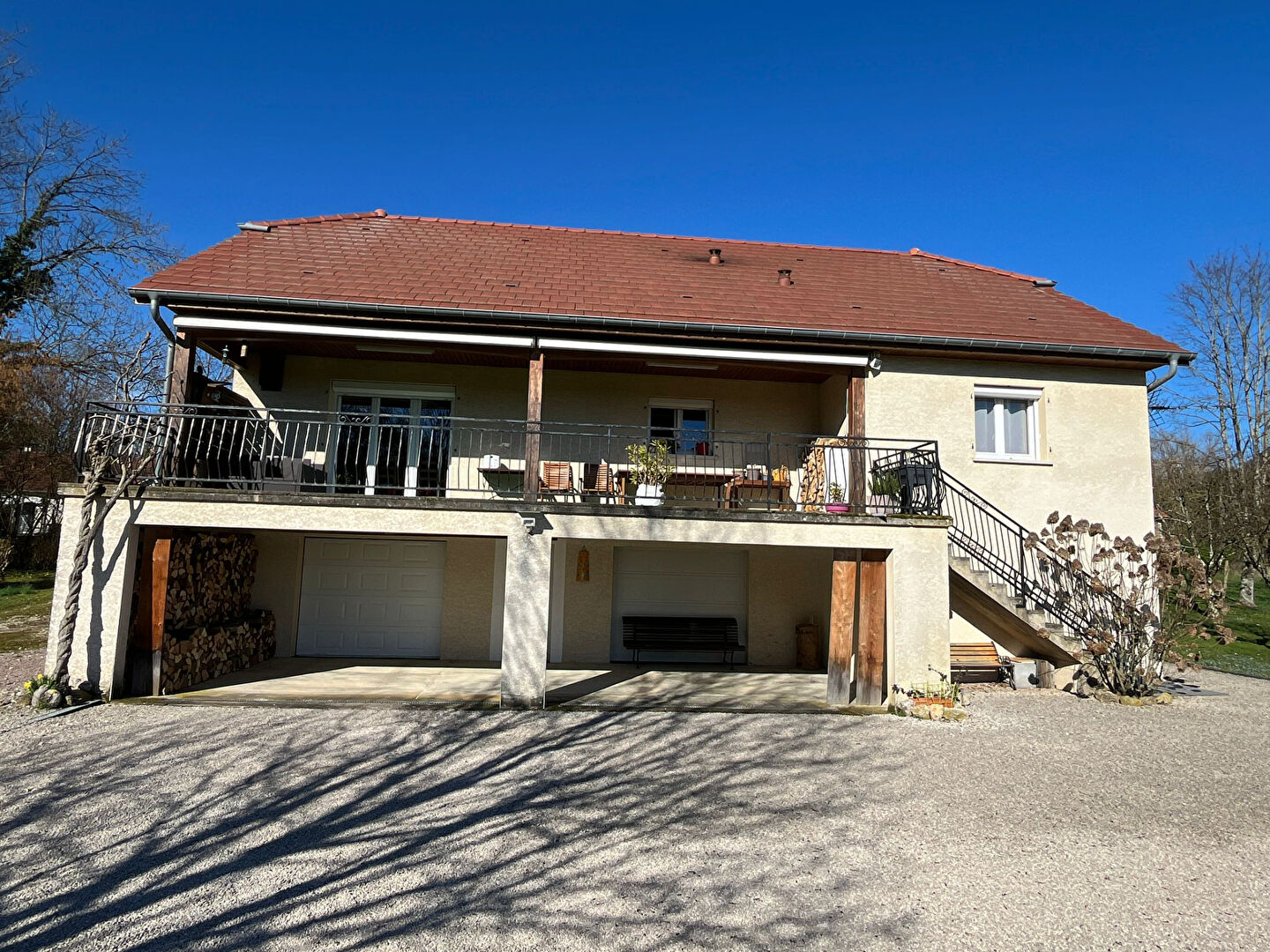 Située dans un environnement agréable et calme, à seulement 20 minutes de Besançon et à proximité de Marnay, cette maison de plain-pied construite en 2005 vous séduira par son excellent état et sa fonctionnalité. Elle comprend une belle pièce de vie lumineuse avec cuisine ouverte sur salon-séjour, offrant un espace convivial et moderne. La pièce principale donne directement accès à une terrasse de 40 m² idéale pour profiter des beaux jours. La partie nuit se compose de 3 chambres confortables et d'une salle d'eau fonctionnelle. Vous bénéficierez également d'un grand sous-sol offrant de nombreuses possibilités (atelier, stockage, espace loisirs), d'un abri voiture ainsi que de nombreuses places de stationnement. Le tout sur un terrain de 12,11 ares. Maison parfaitement entretenue, aucun travaux à prévoir. DPE : D (estimation des coûts annuels d'énergie du logement entre 2010 euros et 2780 euros par an.) Prix moyens des énergies indexés sur les années 2021,2022, 2023 (abonnement compris). Les consommations d'énergies sont beaucoup moindre selon propriétaires . Les informations sur les risques auxquels ce bien est exposé sont disponibles sur le site Géorisques : www.georisques.gouv.fr Les honoraires sont à la charge vendeur.